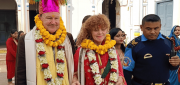 जनकपुरधाम । नेपालका लागि बेलायती राजदूत रब फेन र उनकी धर्मपत्नी जुलिया फेनले जनकपुरधाममा हिन्दू परम्पराअनुसार २२औं वैवाहिक वर्षगाँठ विशेष रूपमा मनाएका छन्। त्रेतायुगमा भगवान राम र माता सीताले जनकपुरमै विवाह गरेको ऐतिहासिक महत्व बोकेको यस पवित्र भूमिमा वर्षगाँठ मनाउन पाउँदा दम्पती अत्यन्तै हर्षित देखिए। फेन दम्पतीले मिथिलामा विवाहको स्वयंवरका बेला बेहुला र बेहुलीले पहिरिने पारम्परिक भेषमा सजिएर समारोह मनाए। राजदूत रब फेनले बेहुलाका लागि विशेष फूलको वरमाला र मौर पाग लगाएका थिए भने उनकी धर्मपत्नी जुलिया फेनले मिथिलामा दुलहीका लागि सौभाग्य सूचक रातो सारी र चुनरी पहिरिएकी थिइन्। जानकी मन्दिरका सह